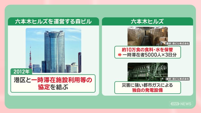 六本木ヒルズを運営する森ビルは、2012 年に港区と『一時滞在施設利用等の協定』を結んでいます。