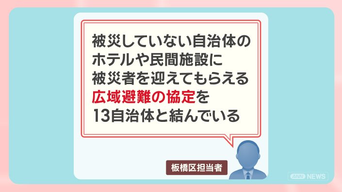 「被災していない自治体のホテルや民間施設に被災者を迎えてもらえる広域避難の協定を13自治体と結んでいる」といいます。