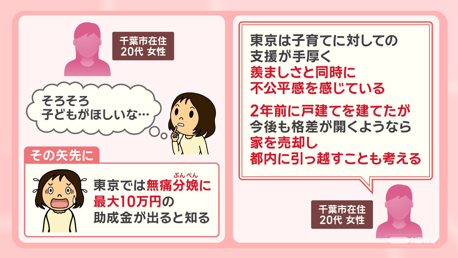 「東京は、子育てに対しての支援が手厚く、羨ましさと同時に、不公平感を感じている。2年前に戸建てを建てたが、今後も格差が開くようなら、家を売却し、都内に引っ越すことも考える」と話しています。