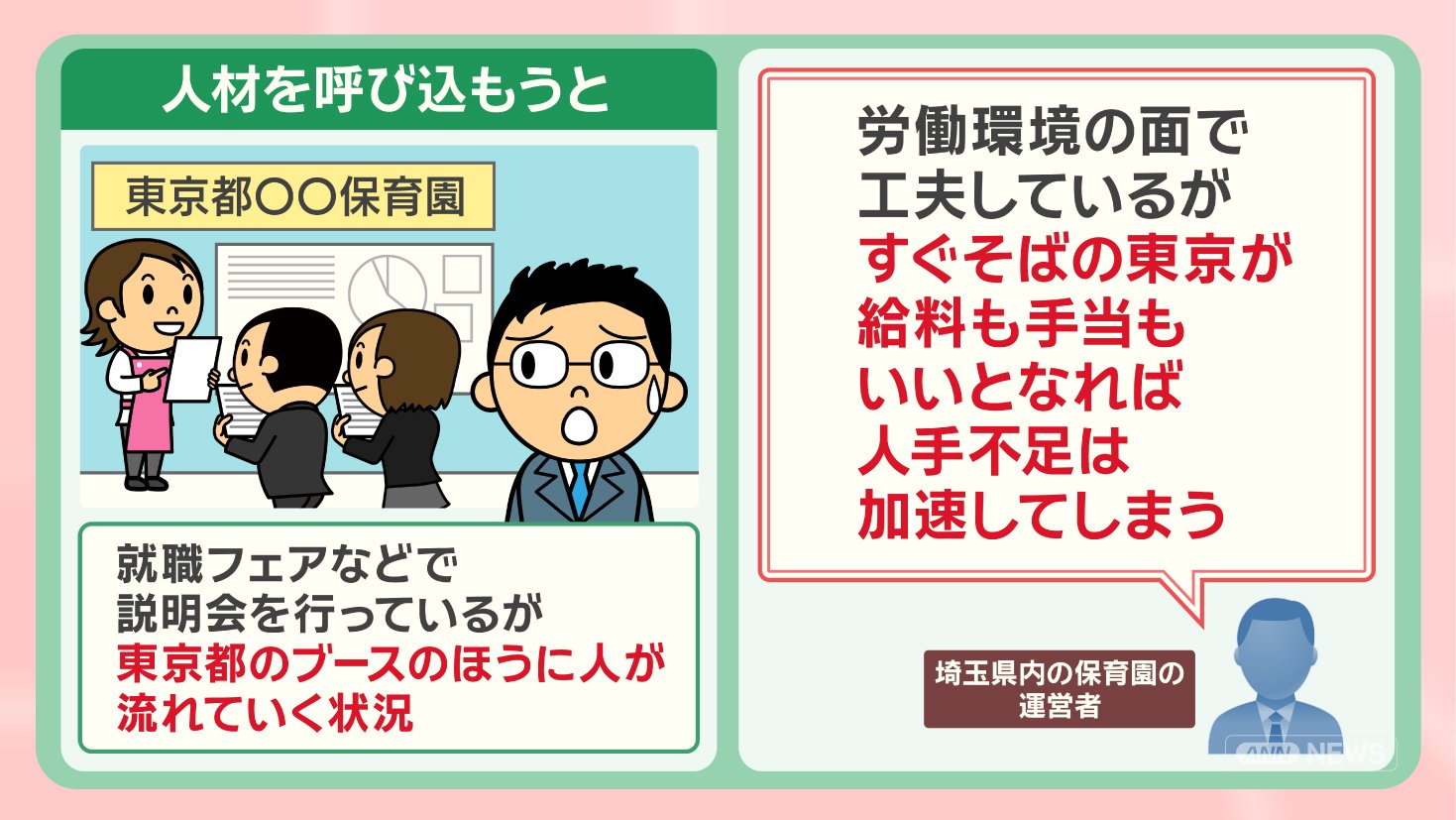 「うちの初任給は手当込みで約24万円だが、東京都は保育士に対する独自の補助金制度もあり、30万円行くところもある」