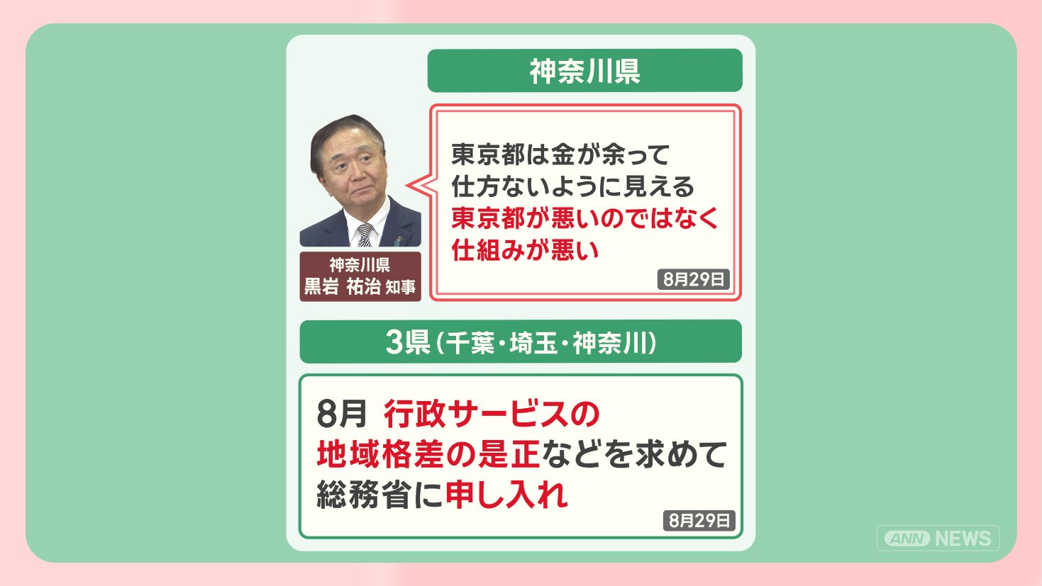 千葉・埼玉・神奈川の3県は、2025年8月に、行政サービスの地域格差の是正などを求めて、総務省に申し入れを行いました。