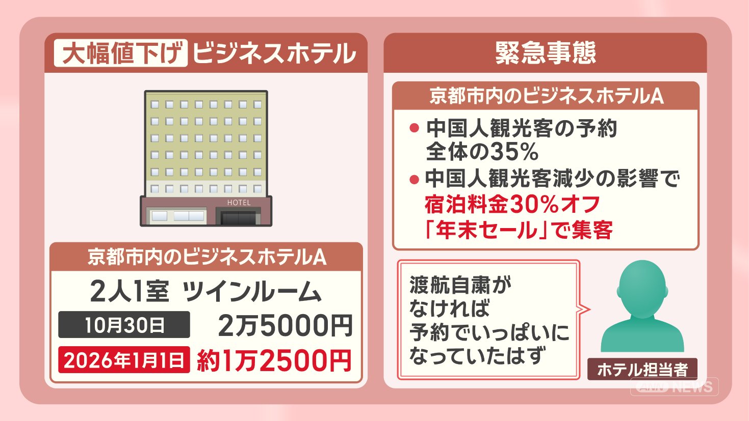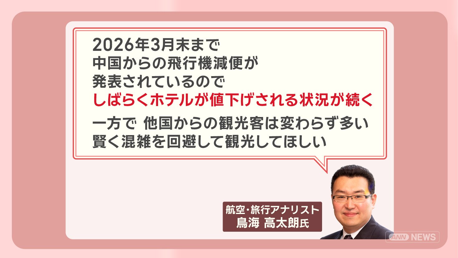 社会 モーニングショー 2025年12月19日 16:00 年末年始 中国人観光客自粛で京都のホテル値下げ続出?1泊2日のお得な旅先とは 広告 1■京都 ホテル値下げ相次ぐ 年末年始 国内旅行がお得に!? この記事の写真は13枚 ■最大9連休 旅の二極化 海外は長期間が人気 ■1泊2日オススメ旅 伊勢神宮 富士山周辺 お得に楽しむ (「羽鳥慎一モーニングショー」2025年12月19日放送分より) 広告 スクープ投稿 トップ 社会 記事