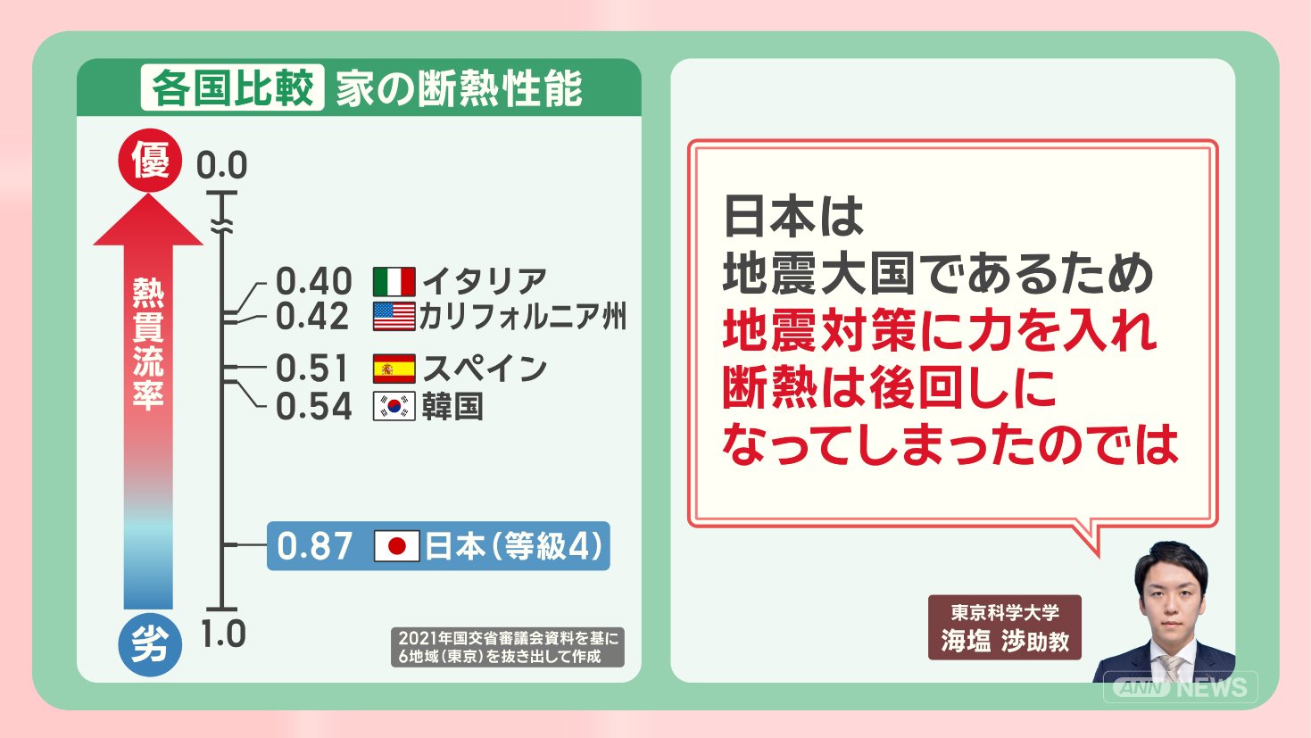 「日本は地震大国であるため、地震対策に力を入れ、断熱は後回しになってしまったのでは」ということです。
