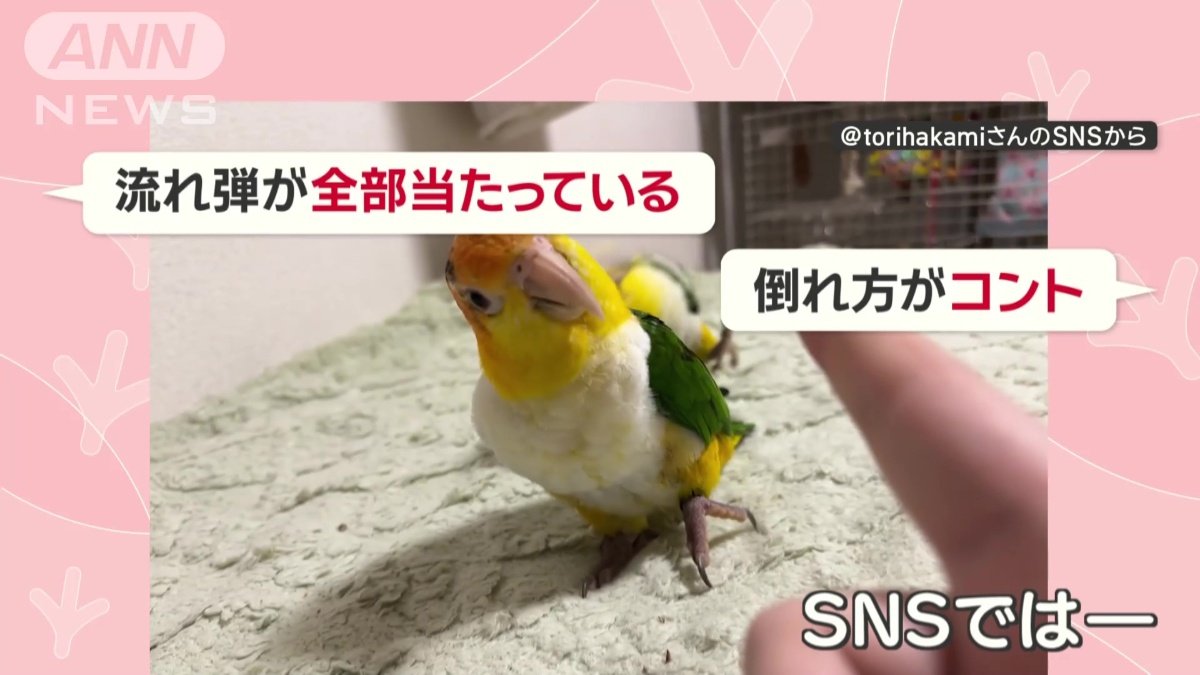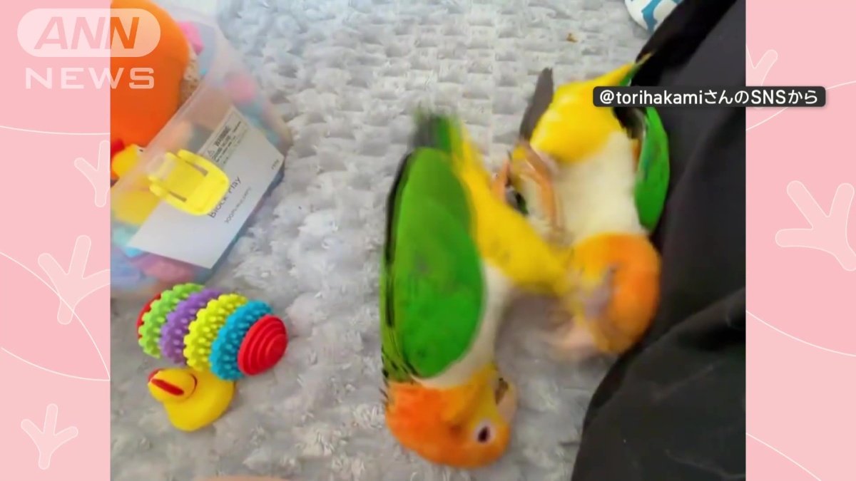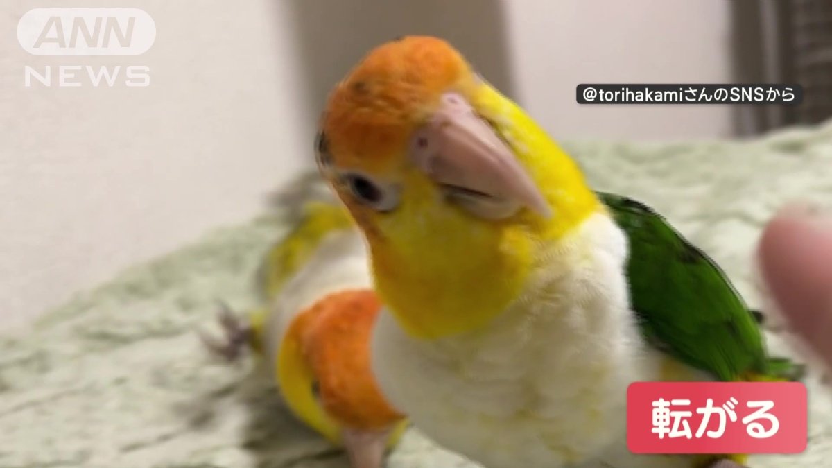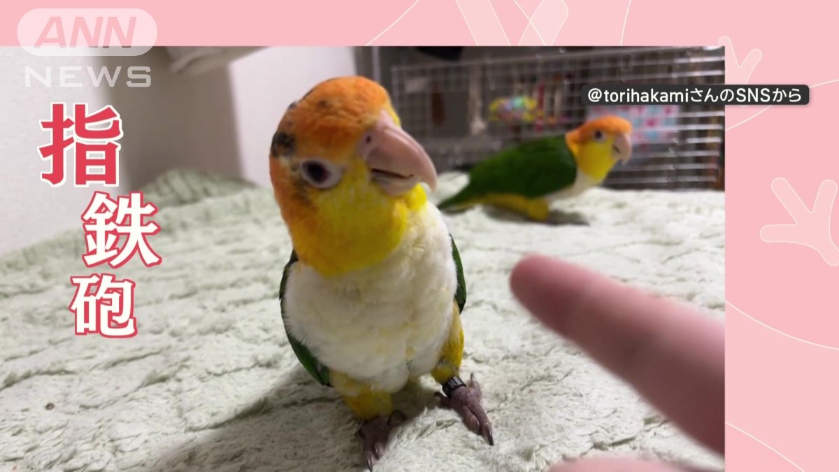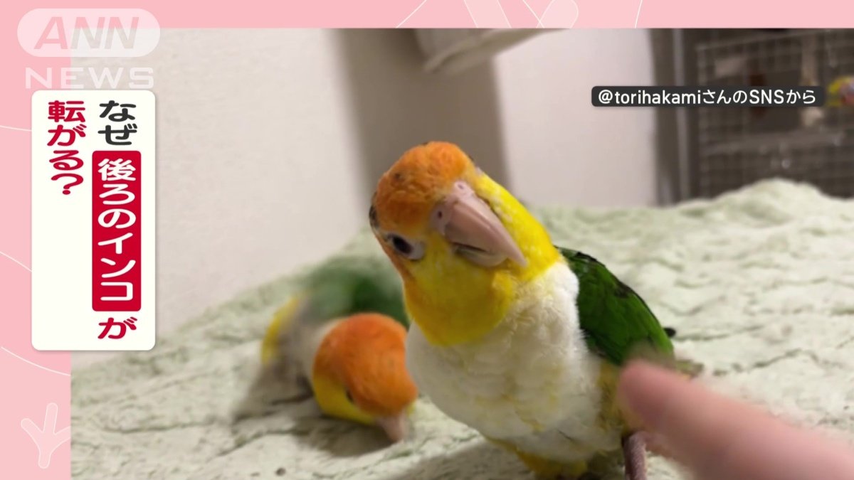 まるでコント 指鉄砲にインコがコロリン…そっちかい! なぜ後ろのインコが転がる?