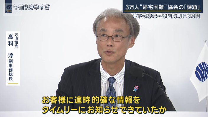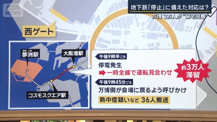 社会 報道ステーション 2025年8月15日 00:51 地下鉄停電…原因解明に6時間 万博 まさに“孤島”3万人が帰宅困難 2025年8月15日 00:51 広告 広告 広告 広告 広告 広告 広告 シェア スクープ投稿 この記事を読む トップ 社会 ギャラリー
