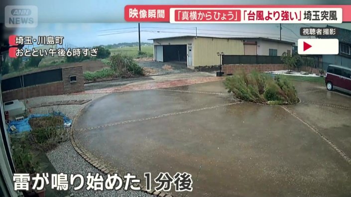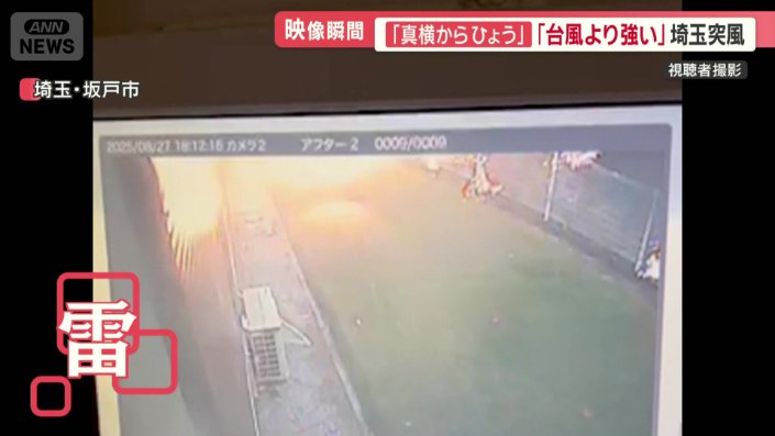 徐々に雨が降り雷が鳴り始め、突然の土砂降りに