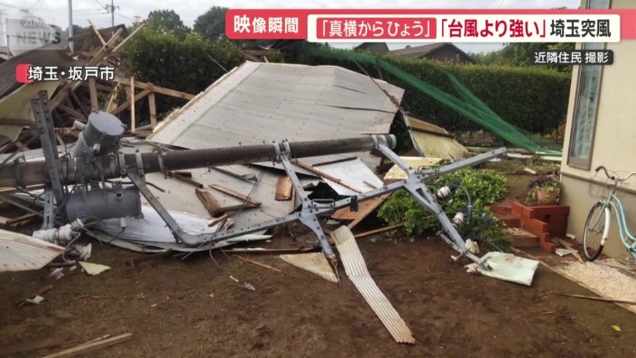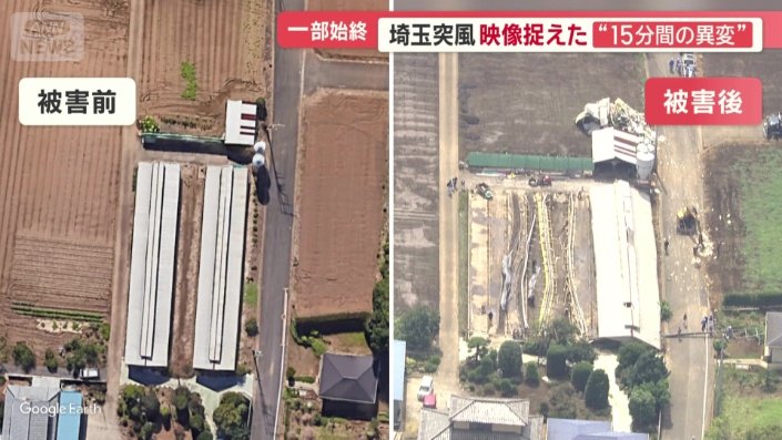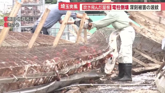 片方の鶏舎は屋根が吹き飛ばされ、建物を支えていた鉄骨も倒壊