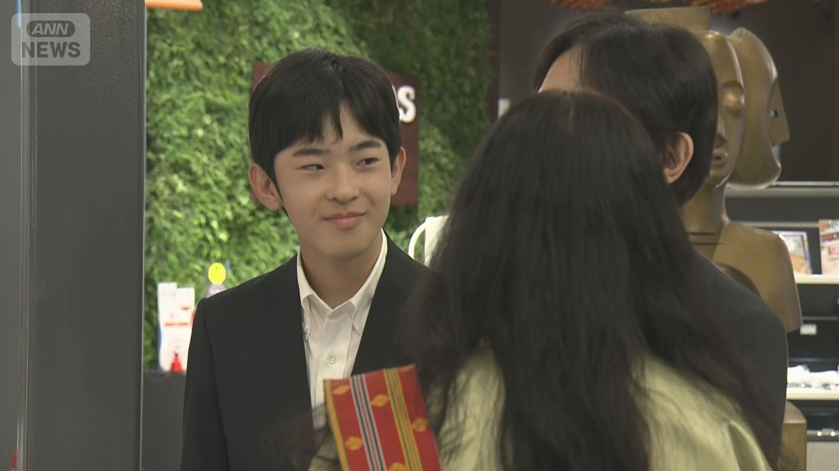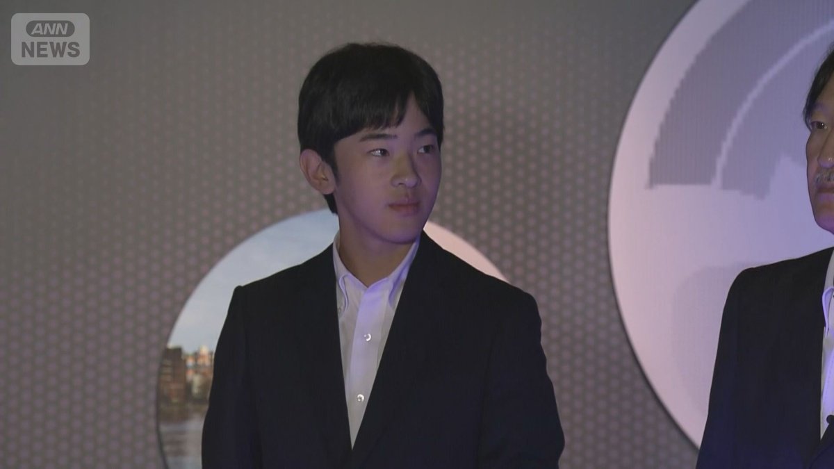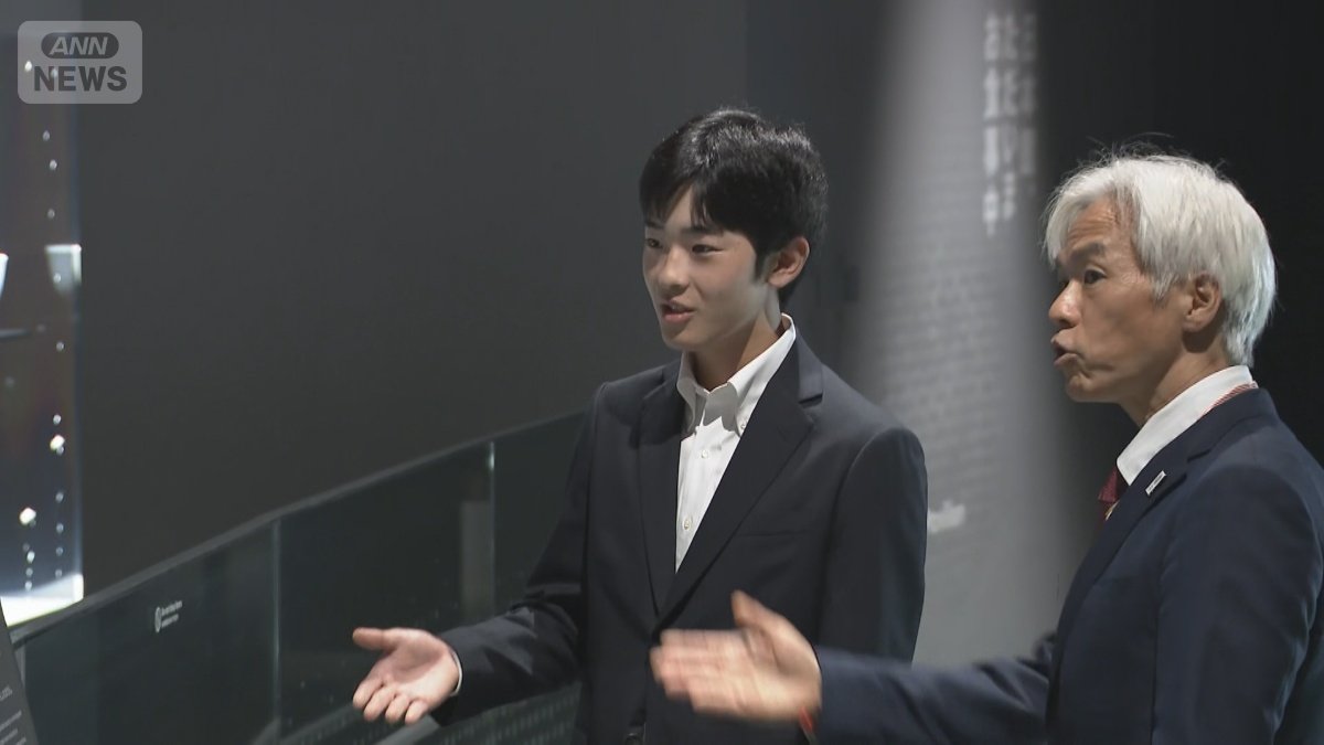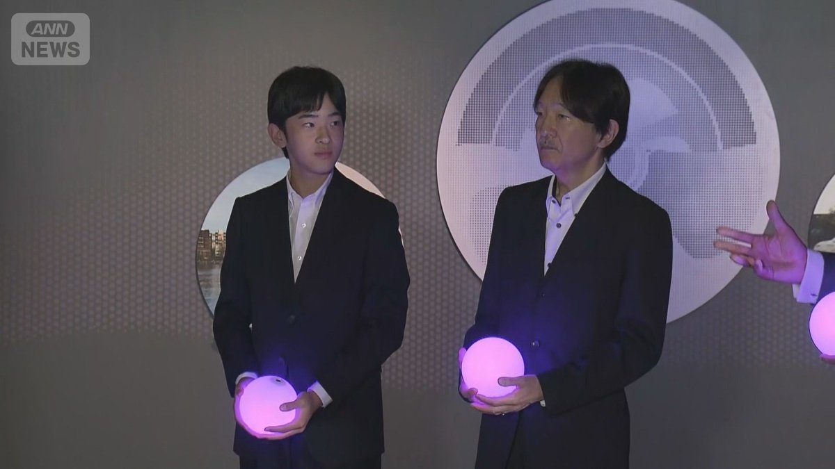 展示物を見上げる悠仁さま