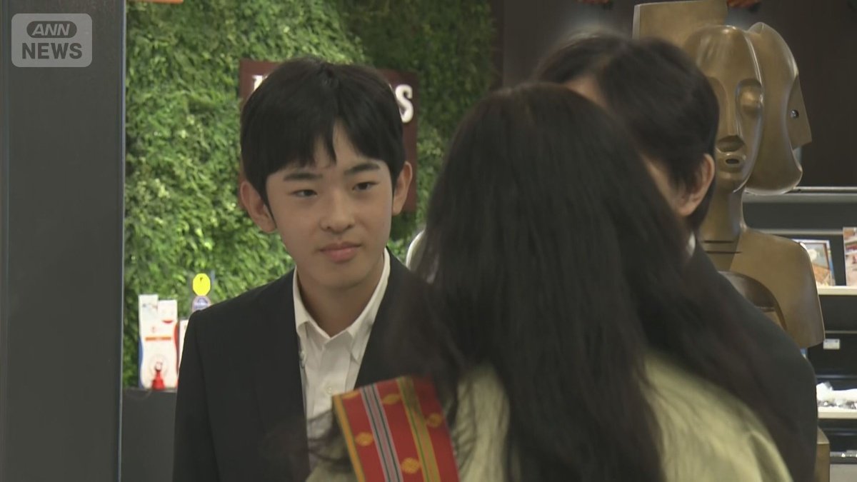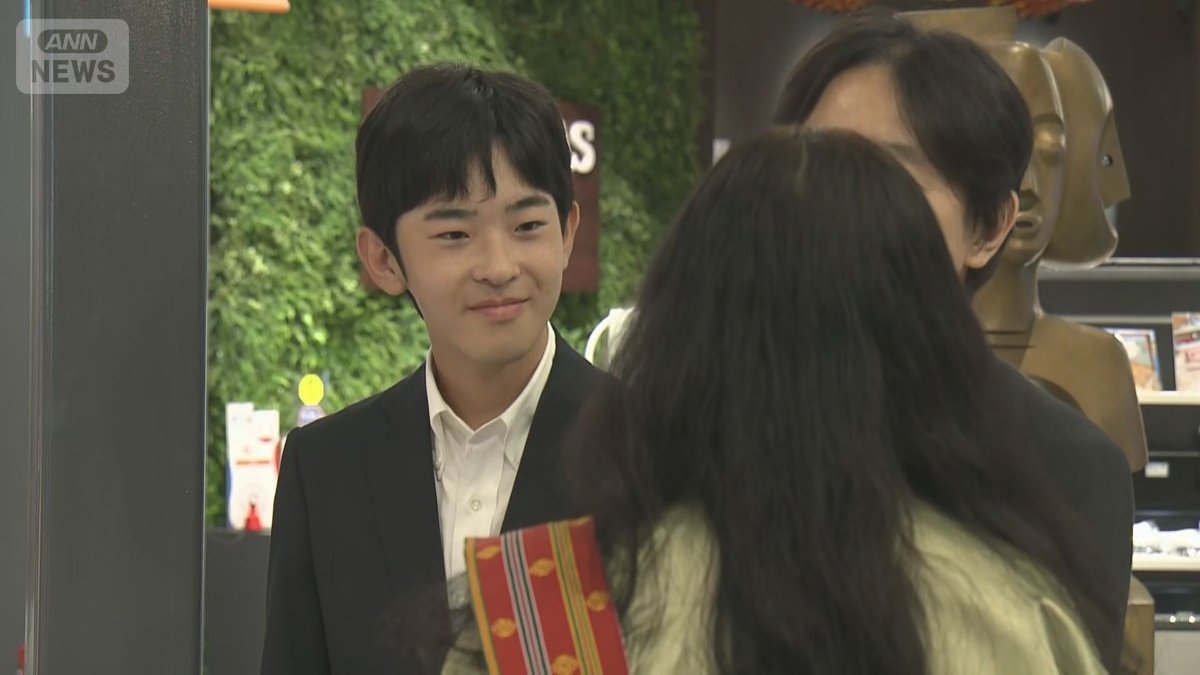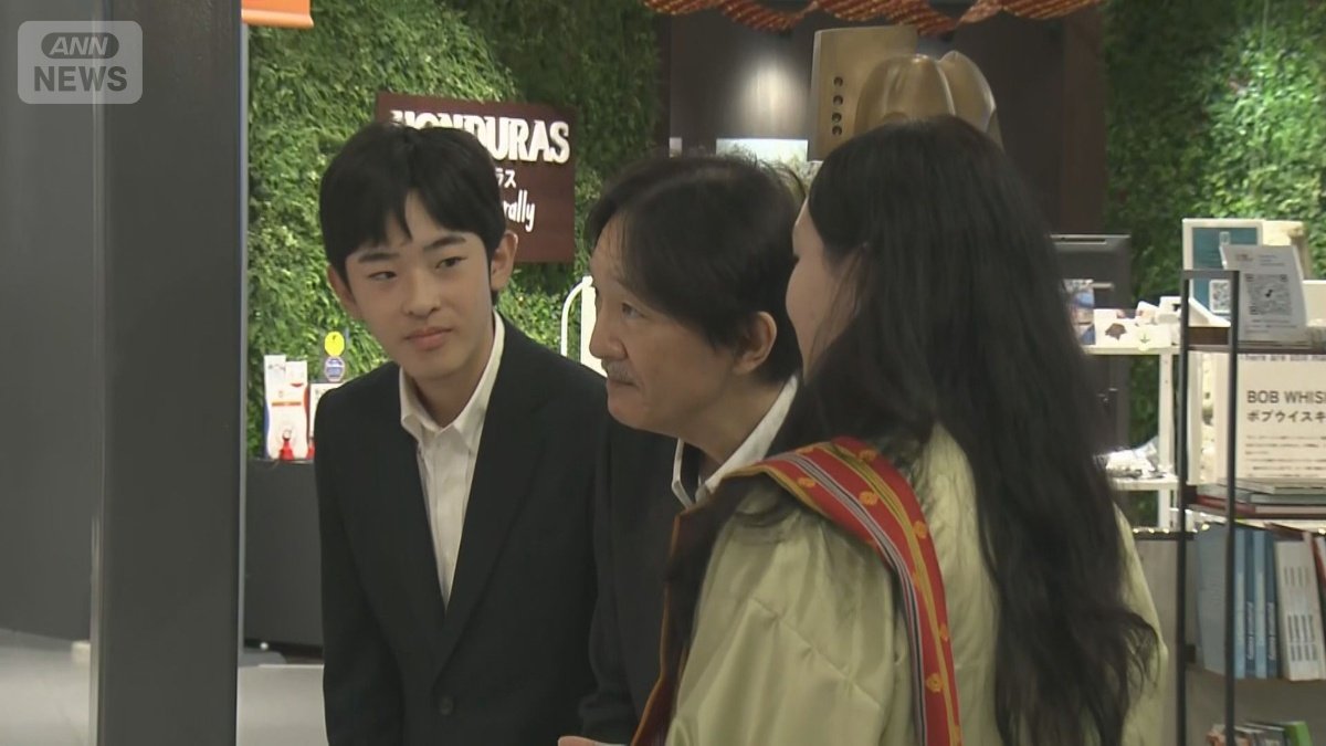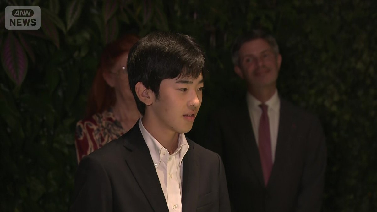 展示物を見上げる悠仁さま
