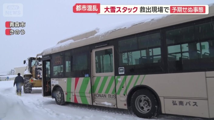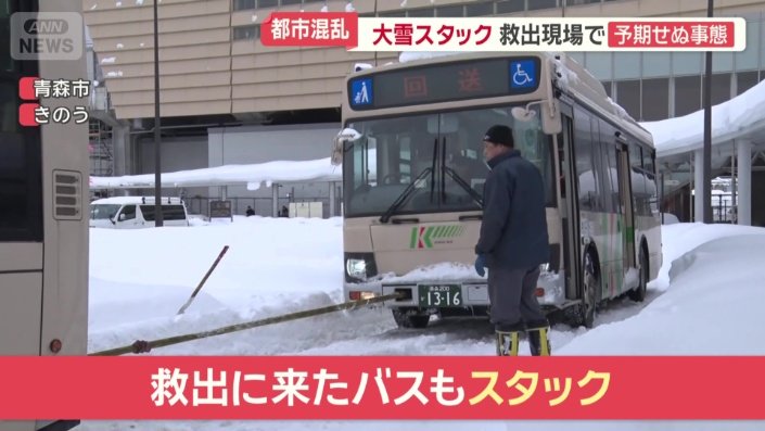 除雪の重機によってバスが救出された