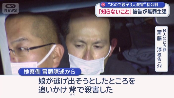“家族3人殺害”初公判で「黒い斧と銀の斧」 防犯カメラ画像も