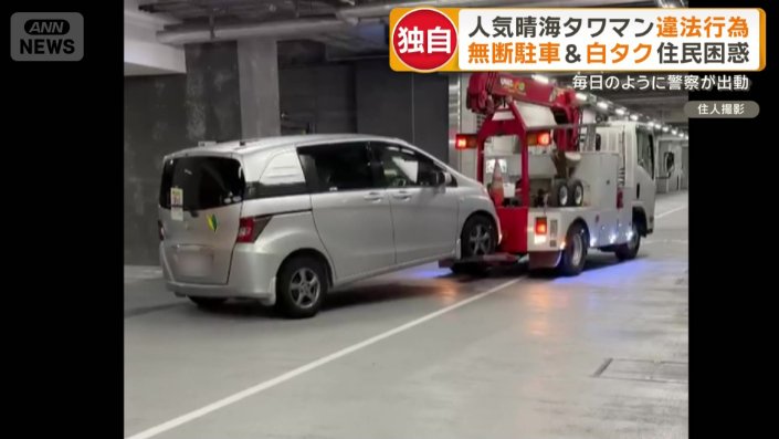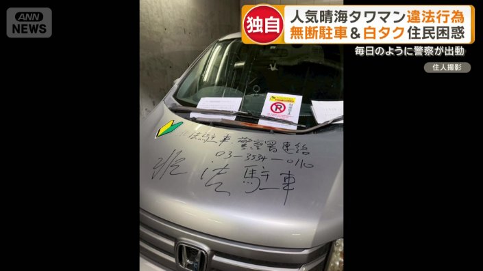 ボンネットには漢字で「非法駐車」