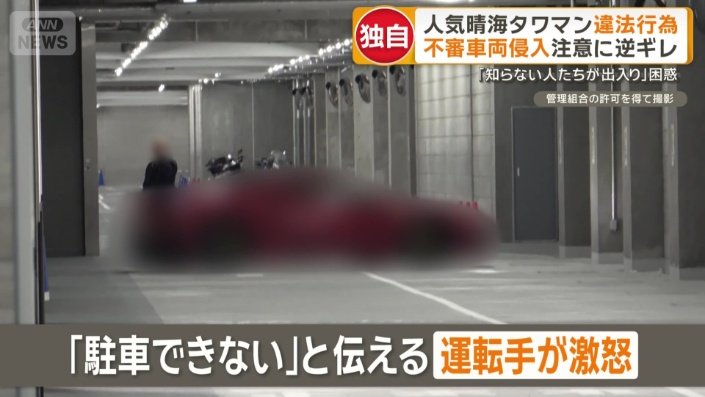 取材中に駐車場内へ侵入した不審車両