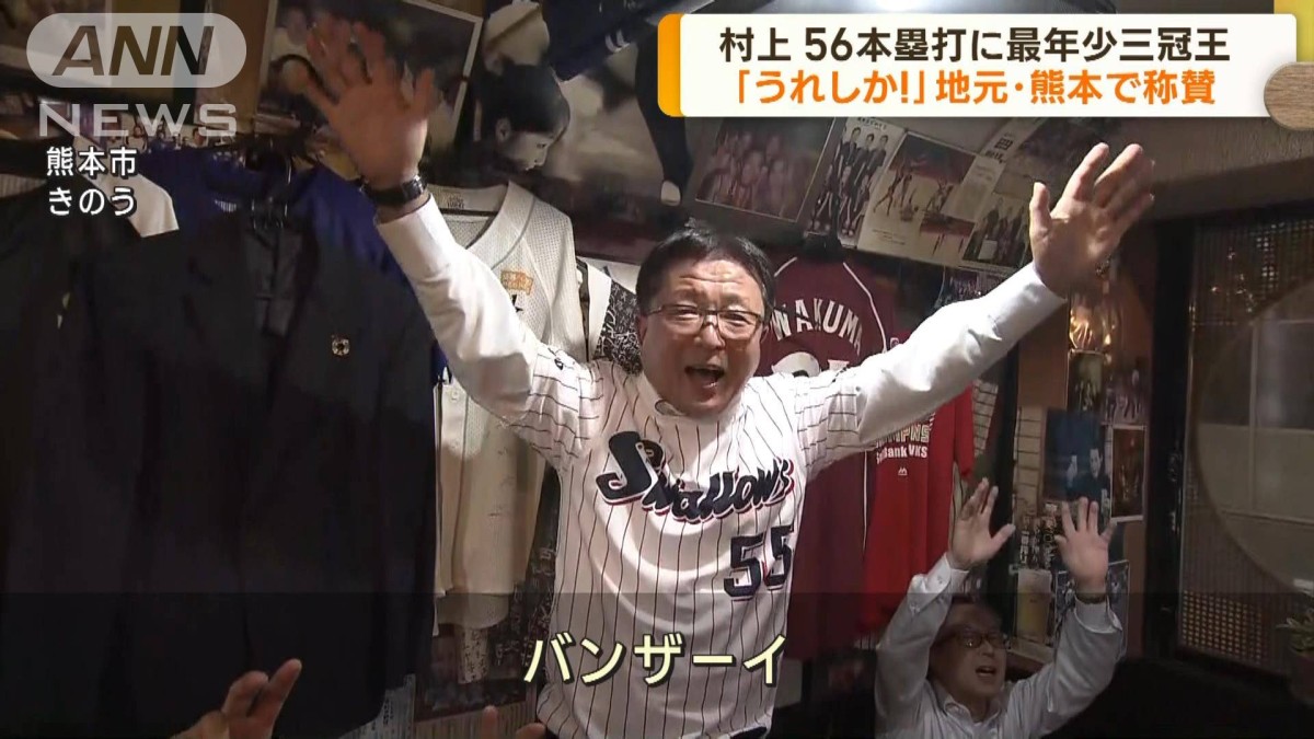プロ野球ヤクルトの村上宗隆が日本選手最多となるシーズン56本のホームランと史上最年少の三冠王を達成しました。偉業達成に地元の熊本から称賛の声が上がりました。