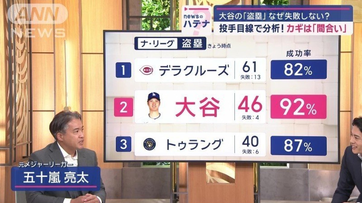 「分かっているんです。なので、ホームを見た瞬間に大谷選手は動き始めているので、こういった思い切りは大事なことで、すごく失敗の可能性が高いので難しいんですけれども、かなり自信があったと思います。100%に近い形で盗塁が成功できるということもあって、大谷選手はこういった成功率が高いところにつながっていると思います」