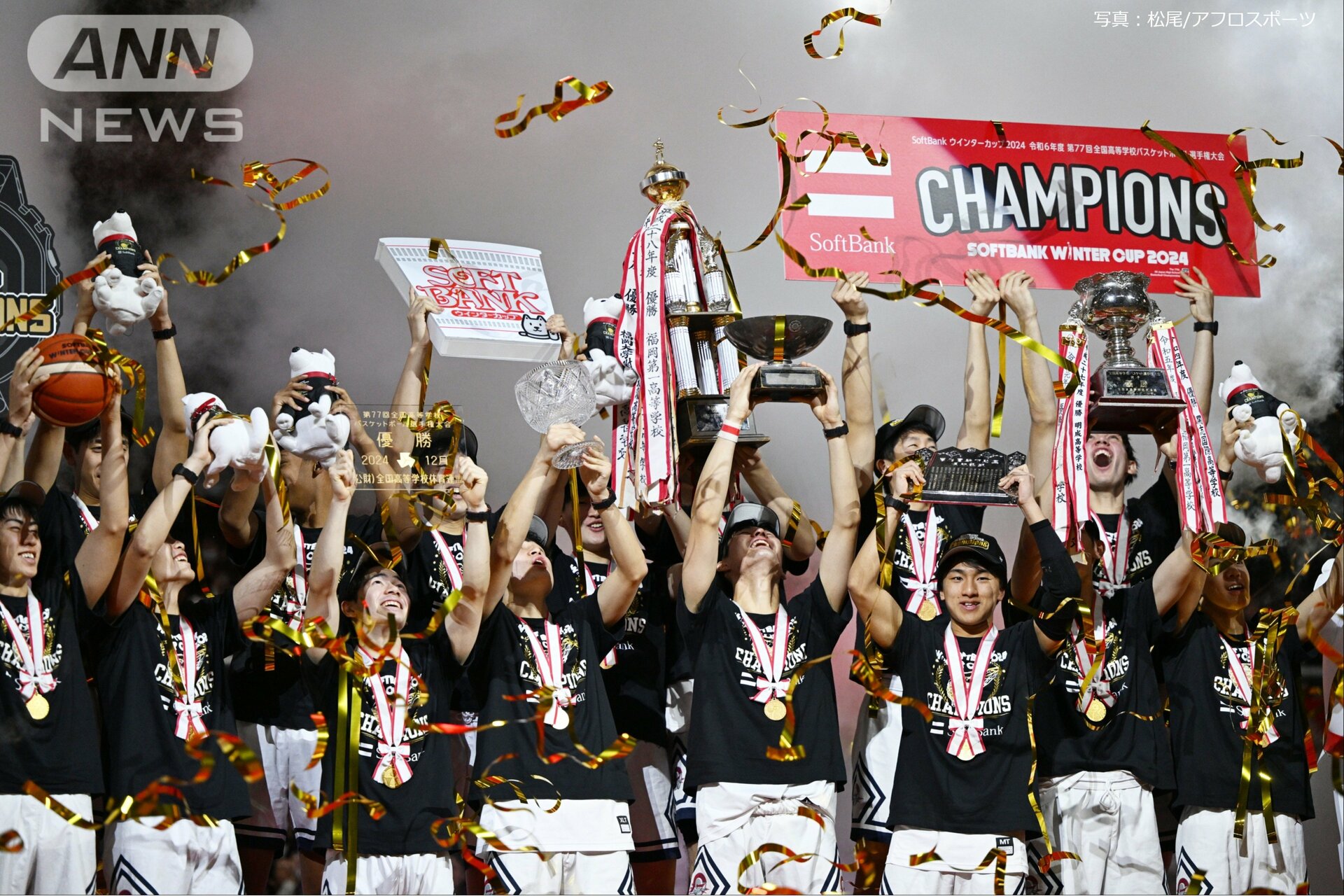 ■渡邉伶音選手「この景色だけを目指して頑張ってきた」■福大大濠が77対57で鳥取城北を破り、3年ぶり4度目の優勝