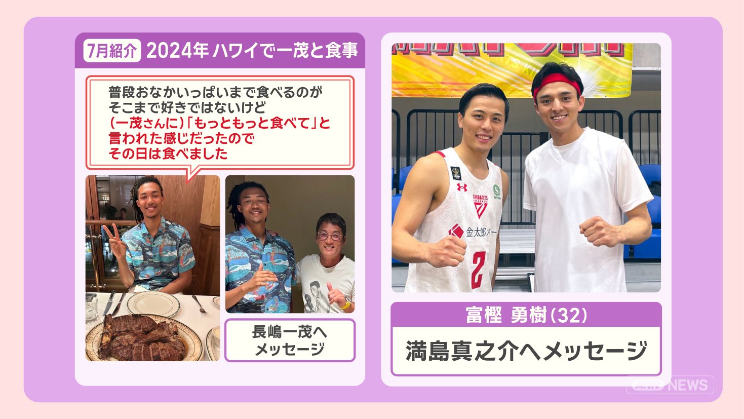 7月4日の番組で紹介しましたが、ジェイコブス選手は、2024年ハワイで一茂さんと食事しました。