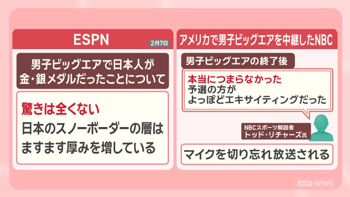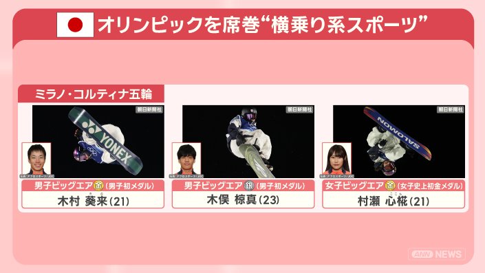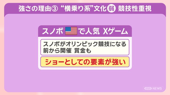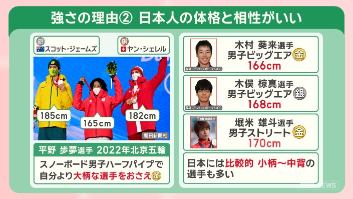 スポーツ モーニングショー 2026年2月12日 16:00 スノボで金・銀メダル続出「真面目にコツコツ」も要因?“横乗り系”日本快進撃のワケ 広告 1■スノボ男女ビッグエアで金・銀 “横乗り系”夏も五輪席巻 この記事の写真は18枚 ■スノボ&スケボー 強さの理由は『幼少期』 ポイントは練習量 ■スノボ×日本人体格 相性の良さ オフシーズン施設の充実も ■“横乗り系”文化の弱さが好成績に?日本では競技性重視 (「羽鳥慎一モーニングショー」2026年2月11日放送分より) 広告 スクープ投稿 トップ スポーツ 記事