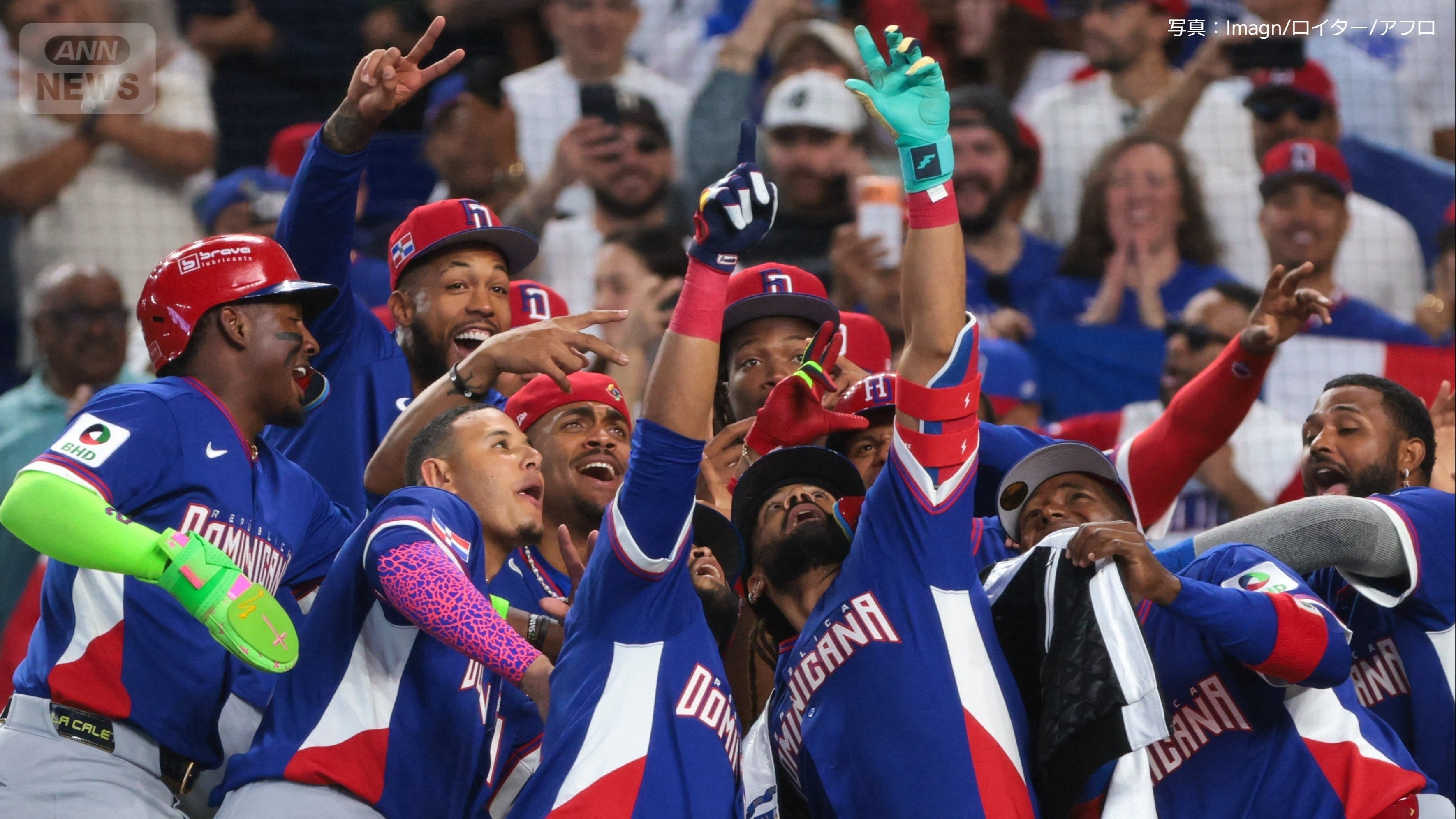 ベンチ前で盛り上がるドミニカ共和国の選手たち