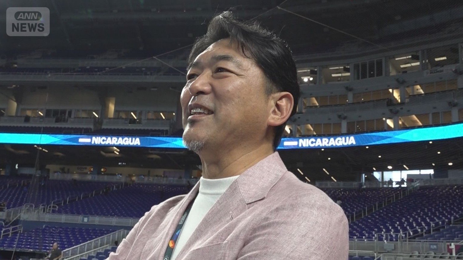 ベネズエラ対イスラエルの試合前に取材する齋藤隆氏(3月8日)
