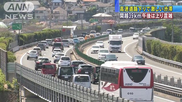 高速下りで渋滞、関越道39km 午後に上り混雑始まる