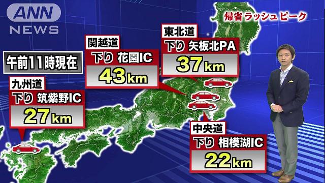 帰省ラッシュはピーク 高速道路では激しい渋滞が…