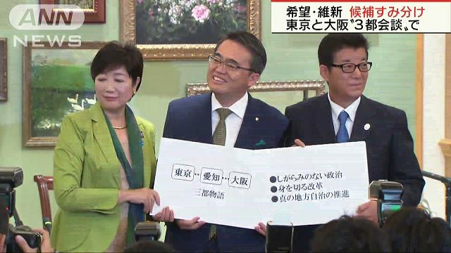 「希望」「維新」が候補者すみ分け 東京・大阪で